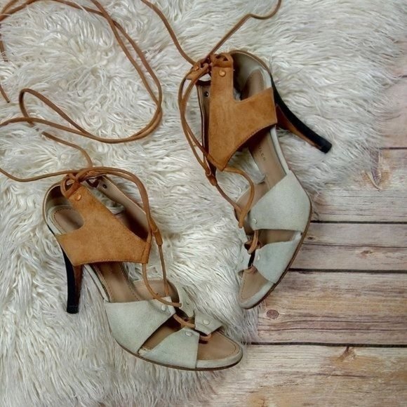 Proenza Schouler | Beige & Camel Suede Ankle Tie Wrapped Caged Heeled Sandals