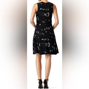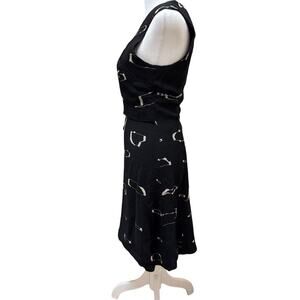 Printed black crepe (74% Acetate, 26% Viscose). Sleeveless. V-neckline. Hourglass. Hidden back zipper with hook-and-eye closure. Fully lined. 40’’ from shoulder to hemline.