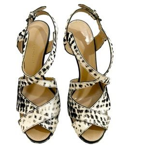 Proenza Schouler Black & White Textured Crisscross Strap Peep Toe Fishbone Heels, 38 1/2 =8 1/2