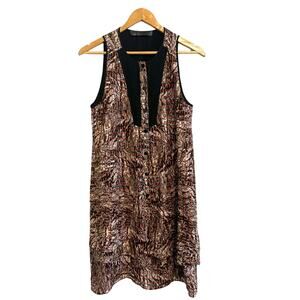 Proenza Schouler Black and Burnt Red Patterned Sleeveless Mini Dress