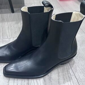 @_mhollman_ Hi! It is a little confusing because of the way the heel angles inward. I added a photo but I think that from the toe to the actual end of the boot is about 11 1/4”.