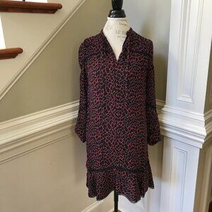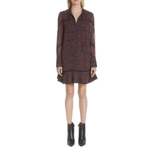 Proenza Schouler Cracked Pattern Dress Womens 2 Red Black V-Neck Long Sleeve