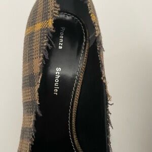 Proenza Schouler FRAYED CHECKED WOOL AND LINEN-BLEND PUMPS BROWN 38 8 Academia