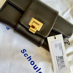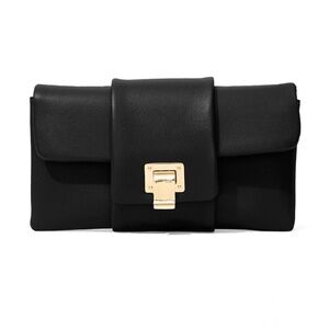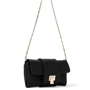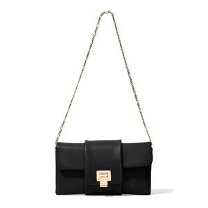 Brand new black lamb skin over the shoulder bag with gold chain-link shoulder strap, gold clip-lock clasp, and internal card slot. Never used.