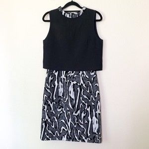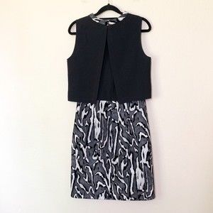 Proenza Schouler Flocked Jacquard Crepe Dress 4 Sheath Sleeveless Black Gray