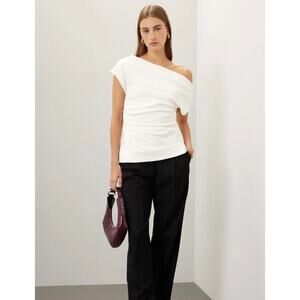 Your favorite white tee but made for date night. Style this boat neck t-shirt on an angle for an asymmetrical vibe or off the shoulder for a sultry take on this staple top.
