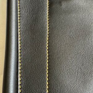 This is SUCH a happy bag, and it really adds a pop of color to any outfit. It's made of black calf leather and has a rusty-red interior. The handles are made of braids, one with black/white and one with red/orange. It has a single size zip pocket, and a magnetic snap closure.
