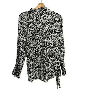Proenza Schouler Long Sleeve Side Tie Printed Silk Blouse Button Down Old Money