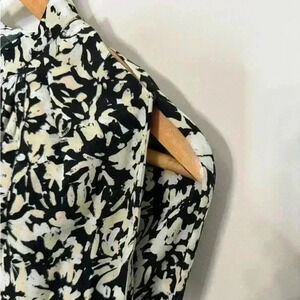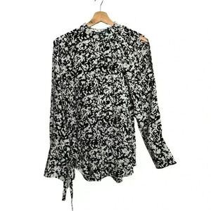 Proenza Schouler Printed Silk Blouse Size 2 Button Down Side Tie Sash Shoulder Cut Outs