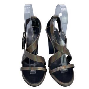 These stylish Proenza Schouler sandals are in excellent pre-owned condition, showcasing a unique iridescent metallic finish that shifts in color with the light. Crafted in Italy from high-quality leather, these sandals feature a modern design with strappy crisscross details across the foot and a secure ankle strap with a buckle closure.