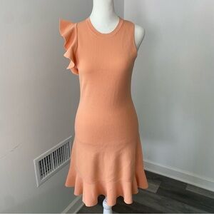 Proenza Schouler One Shoulder Ruffle Peplum Hem Orange Dress XS