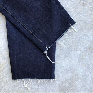 Proenza Schouler PS-J3 Jeans Hi High Rise Waist Waisted Skinny Dark Wash Raw Hem. Leather embossed logo on the back. Measures 12.5" across the waist, 11" rise, and 26" inseam.