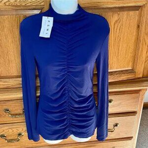 Proenza Schouler PSWL Blue Ruched Turtleneck Top Open Back Tee NWOT