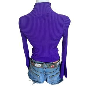Proenza Schouler Purple Ribbed Zip Sweater Purple SMALL Bodycon Designer $990