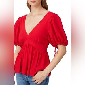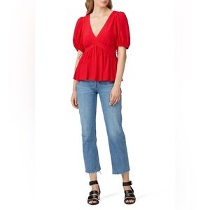Proenza Schouler Red Puff Sleeve Tie Top