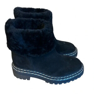Proenza Schouler Shearling Lined Suede Lug Sole Ankle Boots Black IT 36.5 NWOB