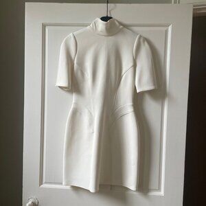 - Proenza Schouler Short Sleeve Mini Dress with off-white structured panels and a fitted turtleneck (size 2).