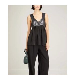 This beautiful Proenza Schouler Silk Sequin Peplum Tank is great for an evening out. This tank features an empire waistline with a hand sequined straps and cups. It gently flares out through the hem, creating soft movement when you walk. Alluring back creates a stunning silhouette. Wear yours with trousers and heels.