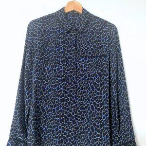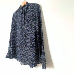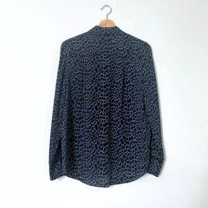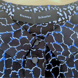 Proenza Schouler Silk Printed Long Sleeve Button-Up Blouse Top Black Blue Size 4