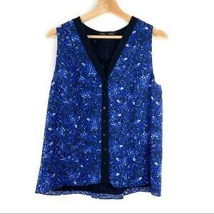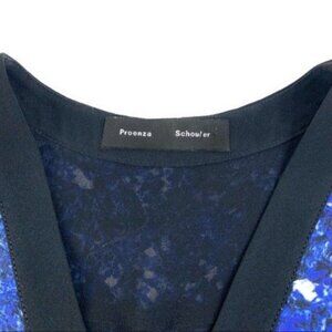 Proenza Schouler Silk Snap Front Blouse. Sleeveless. Blue and black. Lined. V neck. 100% silk. Size 4. Excellent used condition.