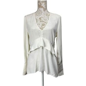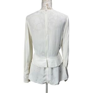 Proenza Schouler Size 6 Jacquard V Neck Long Sleeve White Top Blouse Peplum