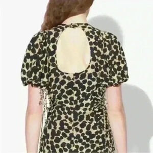 Proenza Schouler Textured Crepe Painted Dot Cinched Cut Out Dress