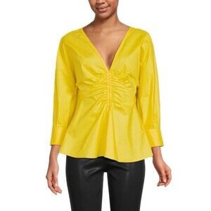 Proenza Schouler White Label Yellow V-Neck Poplin Plunge Blouse NWT Sz 4