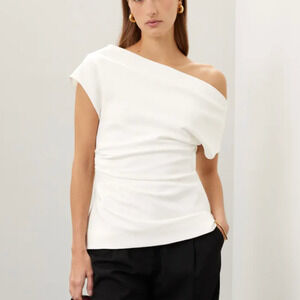 Proenza Schouler White Ruched Top Size 8 Career Off the Shoulder Designer $790