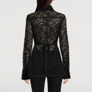 Proenza Schouler Womens Blouse Size 6 Black Stretch-Lace Shirt Designer Collar