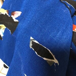 Good condition does have some loose threads not noticeable 100% polyester lining 100% silk