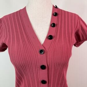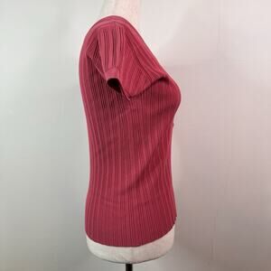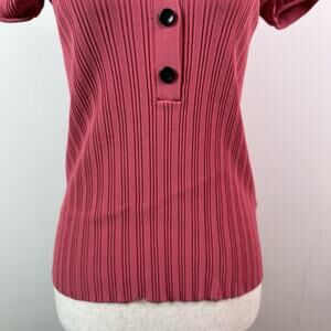 Proenza Shouler Rib Knit Top Short Sleeve Button Detail Coral Size Medium