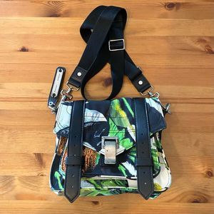 Proenza Schouler PS1 Tropical Print Nylon Pouch Crossbody Bag Ecru Multi Flawed