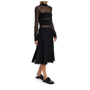 Boasting a semi-sheer fabrication, Proenza Schouler's long-sleeve midi-dress is defined by tonal patchwork at the bodice. A structured mock turtleneck complements the style's fluid pleated skirt.