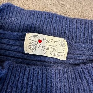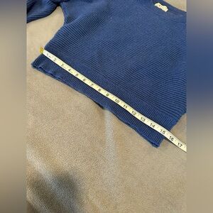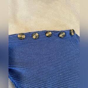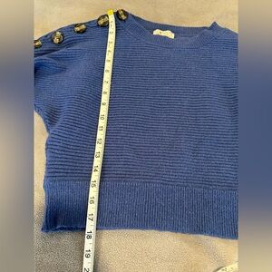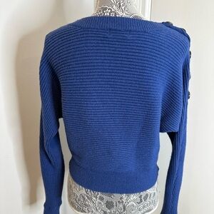 Prof Apparel Blue Bat Wing Women’s Sweater . Ribbed knit sweater with five buttons on the right shoulder. Good used condition. Normal wear. No rips, stains or defects. Please see pictures for measurements.
