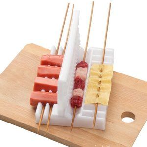 Convenient operation: simple steps, no finger injury, no effort, simple meat threading step finally cuts the meat into the slot. Pressing the handle will pierce the holes on both sides of the stick. Open the handle and take out the skewer.