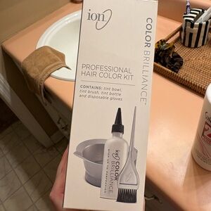 Ion Professional Hair Color Kit that’s only been used once. Bowl + brushes have been cleaned. The Salon Care 20 Volume Creme Developer is still a full bottle.