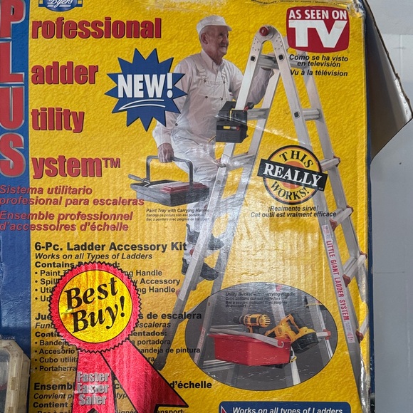 Professional ladder utility system with multiple accessories. Includes a sturdy ladder and tool holder. Ideal for various tasks.