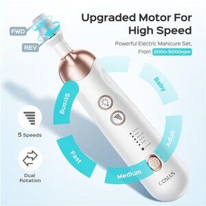 🧿Adjustable Speeds And Direction: 5 speed settings for 2000 to 5000 RPM nail drill machine. You can use low speed for delicate areas and high speed for smooth corns and calluses. With clockwise/counterclockwise rotation, you can easily adjust the direction of the nail clipper to meet left and right-handed use. The powerful motor ensures precise and efficient nail care set, while the low noise (<40 dB) ensures a quiet experience, making daily hand and foot care more comfortable.