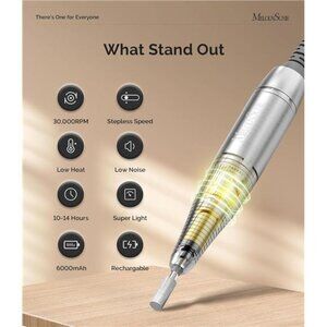 🧿【Top Quality Torque】MelodySusie portable nail drill comes with superior torque to avoid it from stopping occasionally when applying appropriate pressure. The lightweight handpiece is made of a special aluminum alloy material. Ample ventilation holes are designed for dissipating the heat effectively. Ultra-smooth operation with lower heat and lower noise.
