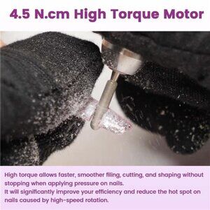 🧿Exclusive High-Torque Motor: The industry-leading 0.46 kgf.cm (4.5 n.cm) high torque motor enables the Delanie e-file nail drill to smoothly file off any nail products and shape any artificial nails without stopping on nails. 0.34 kgf.cm measured on the nail drill bit