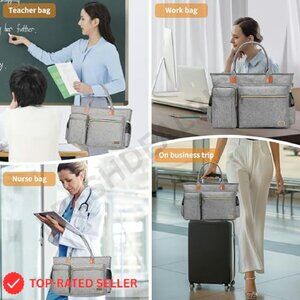 Professional Nurse Tote Bag with Padded Laptop Sleeve Multi-Pocket Work Bag
