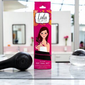 Keep your workspace protected with the Lulu Beauty Professional Silicone Heat Resistant Mat. Measuring 9x11 inches, this durable non-slip pad shields countertops and salon stations from the heat of styling tools up to 450°F.