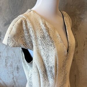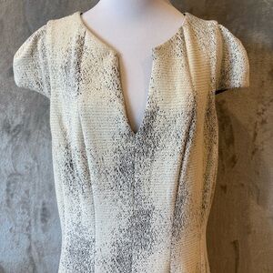 Professional Work Cap Sleeve Ruffle Monochrome Minimalist Office Dress Sz 12