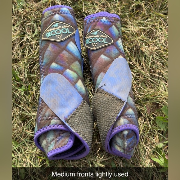 Keep your horse comfortable and protected with Equine Leg Wraps. These wraps feature a stylish purple and gray design, perfect for any equestrian enthusiast.