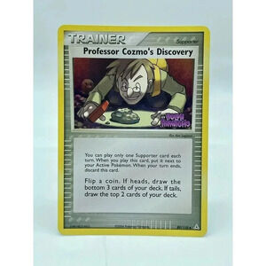 This rare Professor Cozmo's Discovery card is a must-have for any serious Pokémon TCG collector. With its stunning reverse holo finish and intricate illustration by Ken Sugimori, this card is sure to impress. The card is part of the EX Holon Phantoms set and has a card number of 89/110.