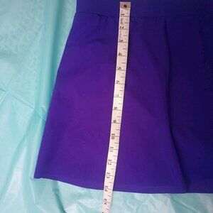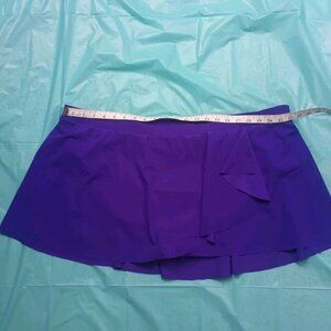 Cute swim skirt, in like new condition. The color is a deep bluish purple, not as pink as the purple in the photos and not as blue as in the others. Looks more blue indoors, more purple in natural light. Tag size is 24W, waist measures approx 22" across laid flat. Overall length is approx 14". Has a built in panty. Layered design on the front. Elastic waist is pliable, not worn out, and lays flat.