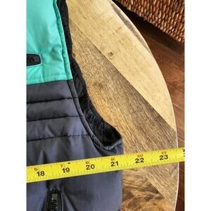 Beautiful blue and black zip up ski vest with down insulation. This is in excellent condition and comes from a clean and smoke free home. Please see photos for measurements.