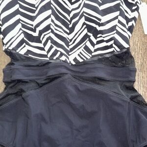 This on trend suit is sleek and stylish. The Profile by Gottex Marble High Neck One Piece has a high neck and slimming mesh design along the waistline.