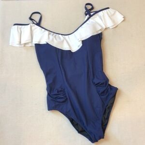 Profile by Gottex Off Shoulder Ruffled Navy One Piece Swimsuit 14