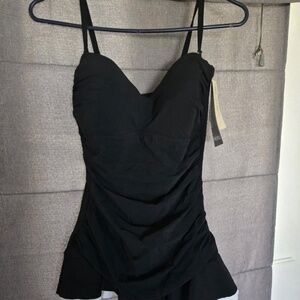 Profile by Gottex Standard BLACK Tutti Frutti Bandeau Swimdress Womens Sz US 14